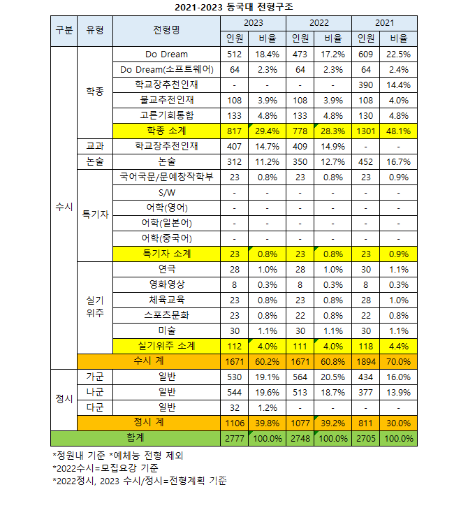 ÇÐÁ¾ DoDream(¼ÒÇÁÆ®¿þ¾î)´Â ÄÄÇ»ÅͰøÇÐÀü°ø Á¤º¸Åë½Å°øÇÐÀü°ø ¸ÖƼ¹Ìµð¾î°øÇаú¿¡ ÇÑÇØ ¼±¹ßÀÌ ÀÌ·ïÁö´Â ÀüÇüÀÌ´Ù. 2022¼ö½Ã¿¡¼ ÄÄÇ»ÅͰøÇÐ27¸í Á¤º¸Åë½Å°øÇÐÀü°ø23¸í ¸ÖƼ¹Ìµð¾î°øÇаú14¸íÀ¸·Î ÃÑ64¸íÀÇ ½ÅÀÔ»ýÀ» ¼±¹ßÇÑ´Ù. DoDream ÀϹÝÀüÇü°ú µ¿ÀÏÇÏ°Ô 1´Ü°è¿¡¼ ¼·ùÁ¾ÇÕÆò°¡100%·Î ÀÏÁ¤¹è¼ö¸¦ ¼±¹ßÇÑ ÈÄ, 2´Ü°è¿¡¼ 1´Ü°è70%¿Í ¸éÁ¢30%¸¦ ÇÕ»êÇØ ÇÕ°ÝÀÚ¸¦ ¼±Á¤ÇÑ´Ù. ÄÄÇ»ÅͰøÇÐÀü°ø Á¤º¸Åë½Å°øÇÐÀü°øÀº 1´Ü°è¿¡¼ 2.5¹è¼ö¸¦, ¸ÖƼ¹Ìµð¾î°øÇаú´Â 3¹è¼ö¸¦ ¼±¹ßÇÑ´Ù. ¼ö´ÉÃÖÀú´Â Àû¿ëÇÏÁö ¾Ê´Â´Ù.