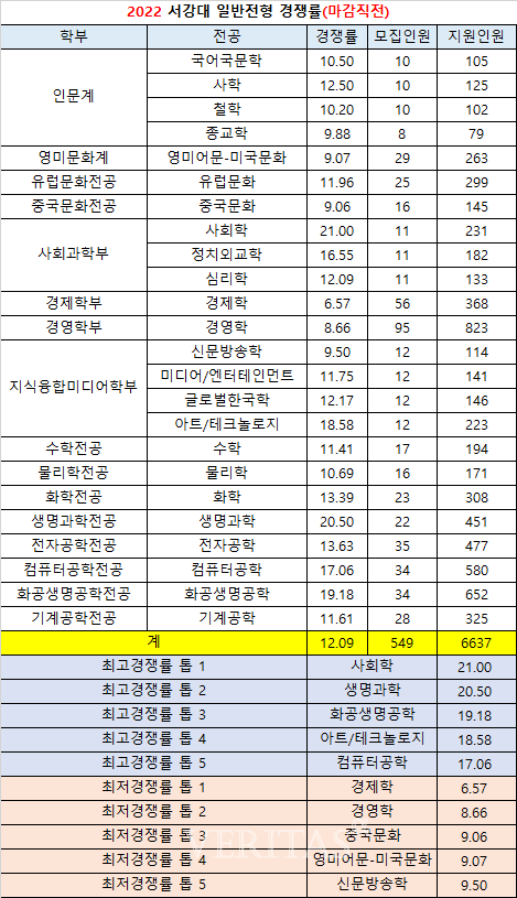 ¸¶°¨Á÷Àü ÀϹÝÀüÇüÀº 12.09´ë1(549¸í/6637¸í)À» ±â·ÏÁßÀÌ´Ù. ÃÖÀú°æÀï·üÀÎ °÷Àº °æÁ¦ÇÐÀ¸·Î, 6.57´ë1(56¸í/368¸í)ÀÌ´Ù. °æ¿µÇÐ8.66´ë1(95¸í/823¸í) Áß±¹¹®È9.06´ë1(16¸í/145¸í) ¿µ¹Ì¾î¹®-¹Ì±¹¹®È9.07´ë1(29¸í/263¸í) ½Å¹®¹æ¼ÛÇÐ9.5´ë1(12¸í/114¸í) ¼øÀ¸·Î °æÀï·üÀÌ ³·´Ù.