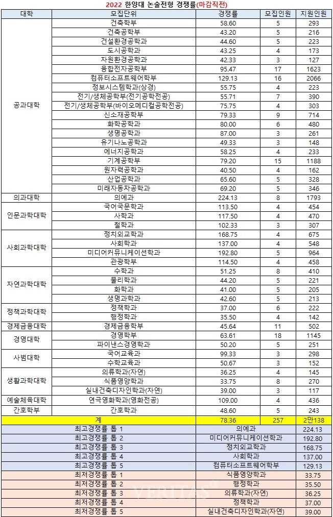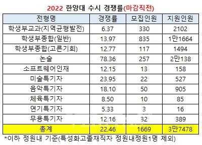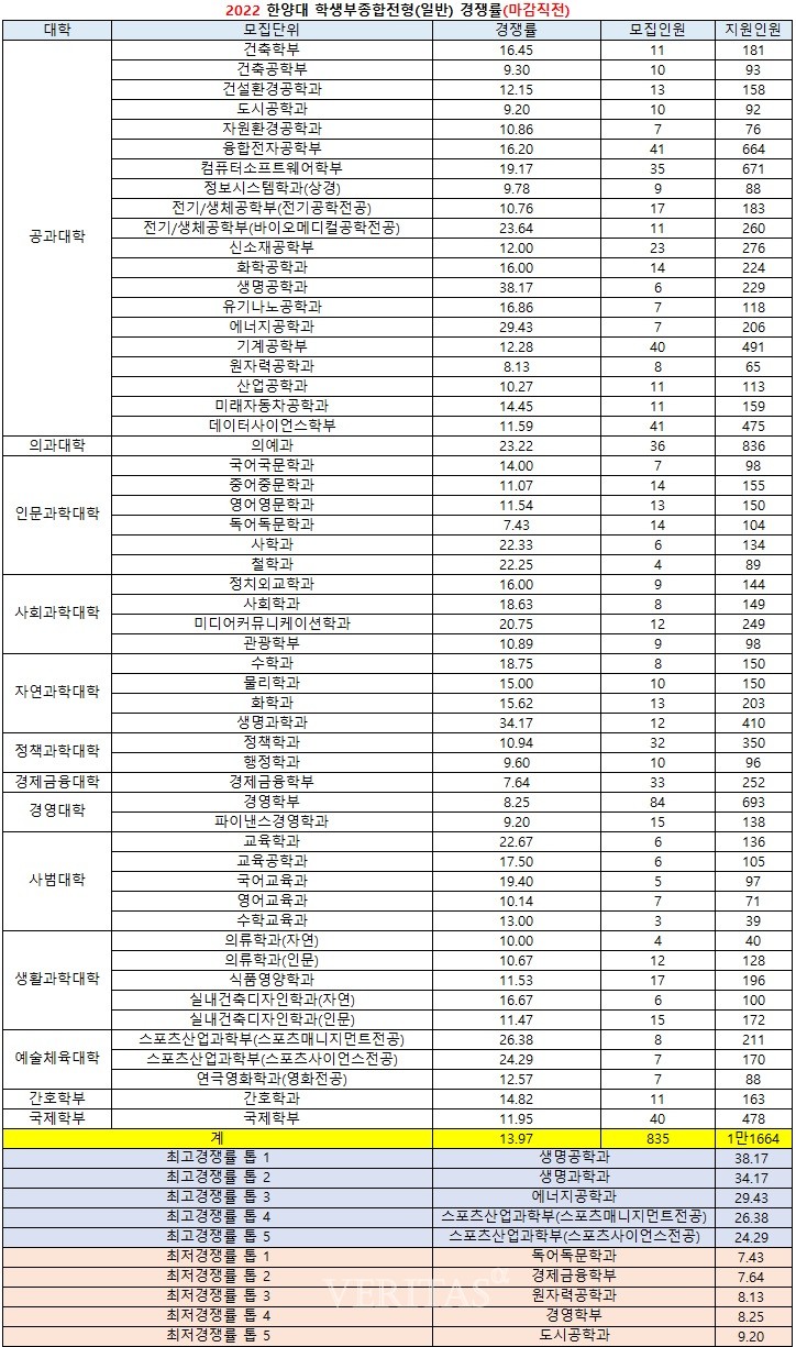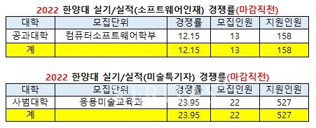 13ÀÏ ¿ÀÈÄ6½Ã ¸¶°¨ÇÏ´Â ÇѾç´ë°¡ ¸¶°¨Á÷Àü ¿ÀÈÄ3½Ã 22.46´ë1(1669¸í/3¸¸7478¸í)ÀÇ °æÀï·üÀ» ±â·ÏÁßÀÌ´Ù. ÀÚ¿¬°è¿ ÃÖ°í ¼±È£ ¸ðÁý´ÜÀ§ÀÎ ÀÇ¿¹´Â 36¸í ¸ðÁý¿¡ 836¸íÀÌ Áö¿øÇØ 23.22´ë1ÀÇ °æÀï·üÀ» ±â·ÏÇϰí ÀÖ´Ù. ³í¼ú¿¡¼´Â 8¸í ¸ðÁý¿¡ 1793¸íÀÇ Áö¿øÀÚ°¡ ¸ô·Á 224.13´ë1ÀÇ °æÀï·üÀ» º¸¿´´Ù.