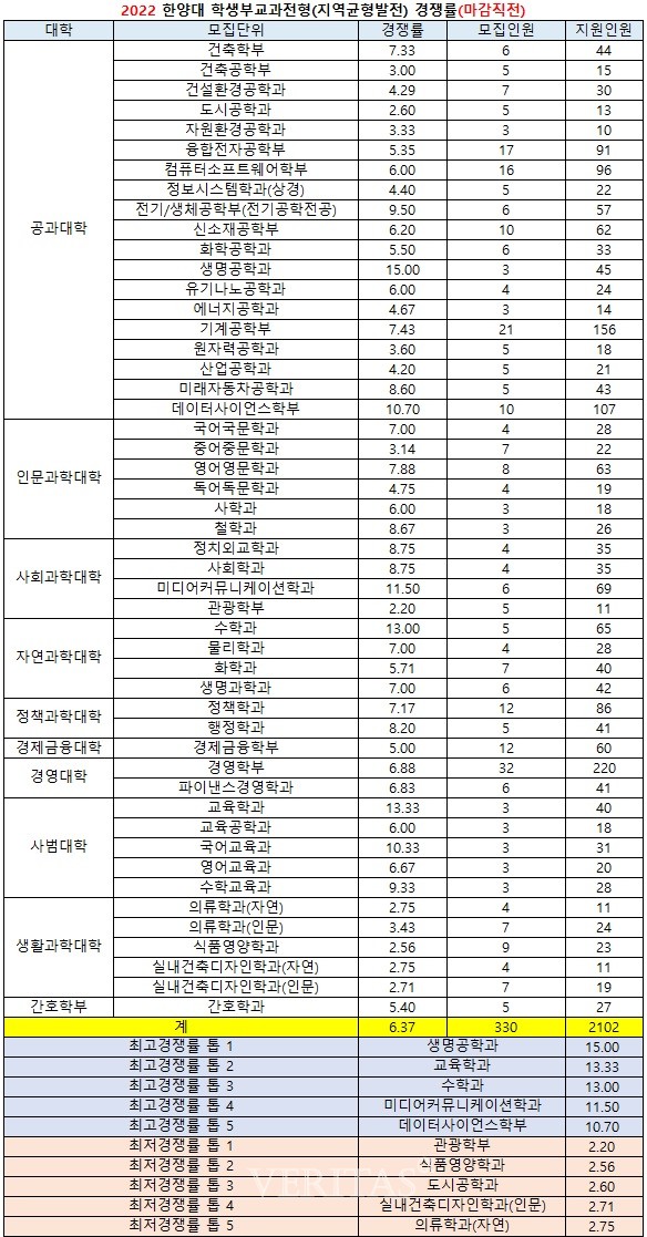 ¸¶°¨Á÷Àü ÇѾç´ë ÇлýºÎ±³°ú(Áö¿ª±ÕÇü¹ßÀü)¿¡¼´Â 330¸í ¸ðÁý¿¡ 2102¸íÀÌ Áö¿øÇØ 6.37´ë1ÀÇ °æÀï·üÀ» º¸À̰í ÀÖ´Ù.